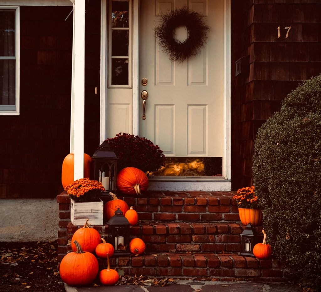 When it comes to the fall front porch, people seem to be a bit bolder with that Halloween-orange, placing juicy pumpkins of all shapes and sizes outside their front doors and getting visitors into the holiday spirit.